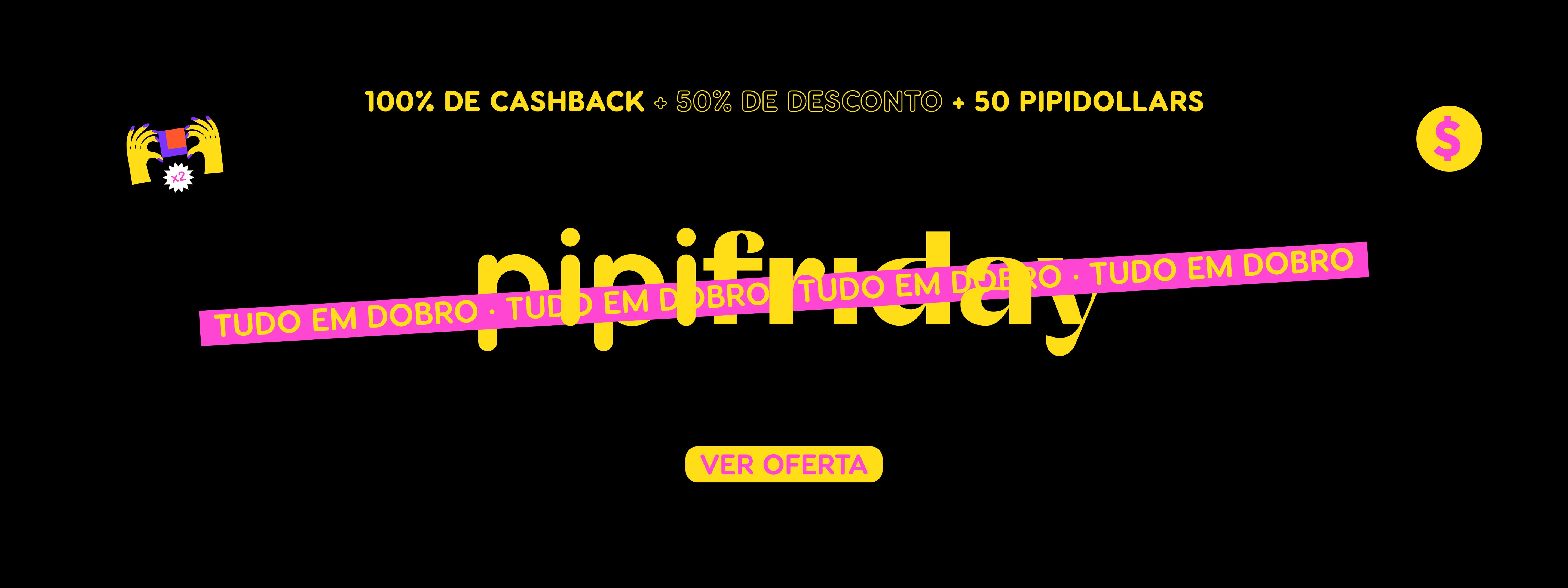PIPIZITOS EM DOBRO + 100% de cashback + 50 pipidollars em cada compra. Frete Grátis acima de 129 reais!