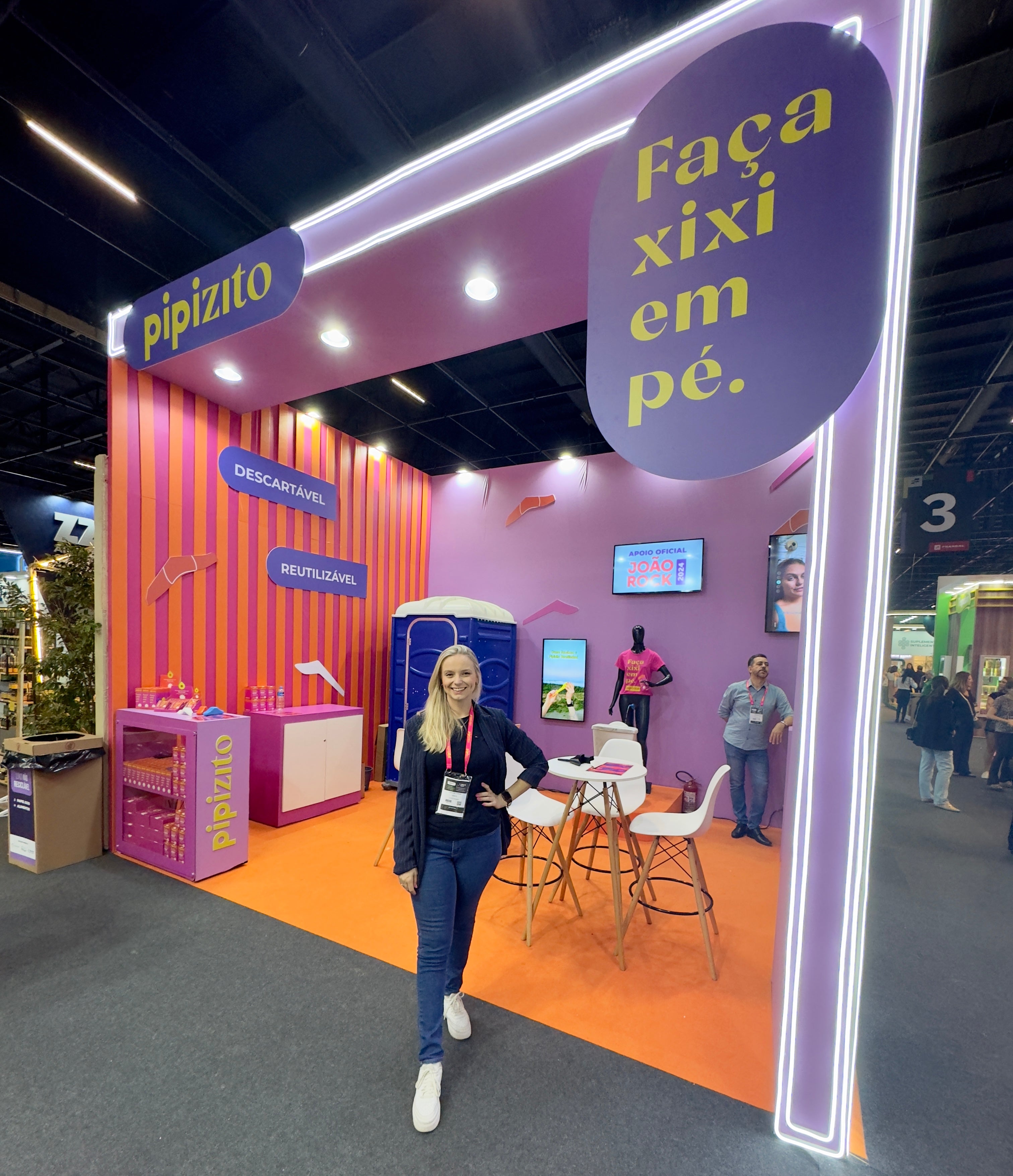 Aqui também tem business! Levamos a pipizito para sua primeira feira, colocamos uma manequim fazendo xixi em pé no meio do stand e demos o que falar.